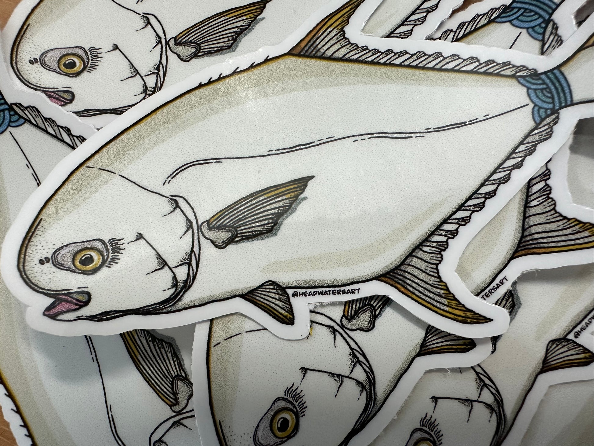 Permit - Anak Fish artwork featuring hand-drawn art by Justin Webber. All fish measure approximately 120mm and 250mm. Premium vinyl stickers, specially laminated to resist the elements.