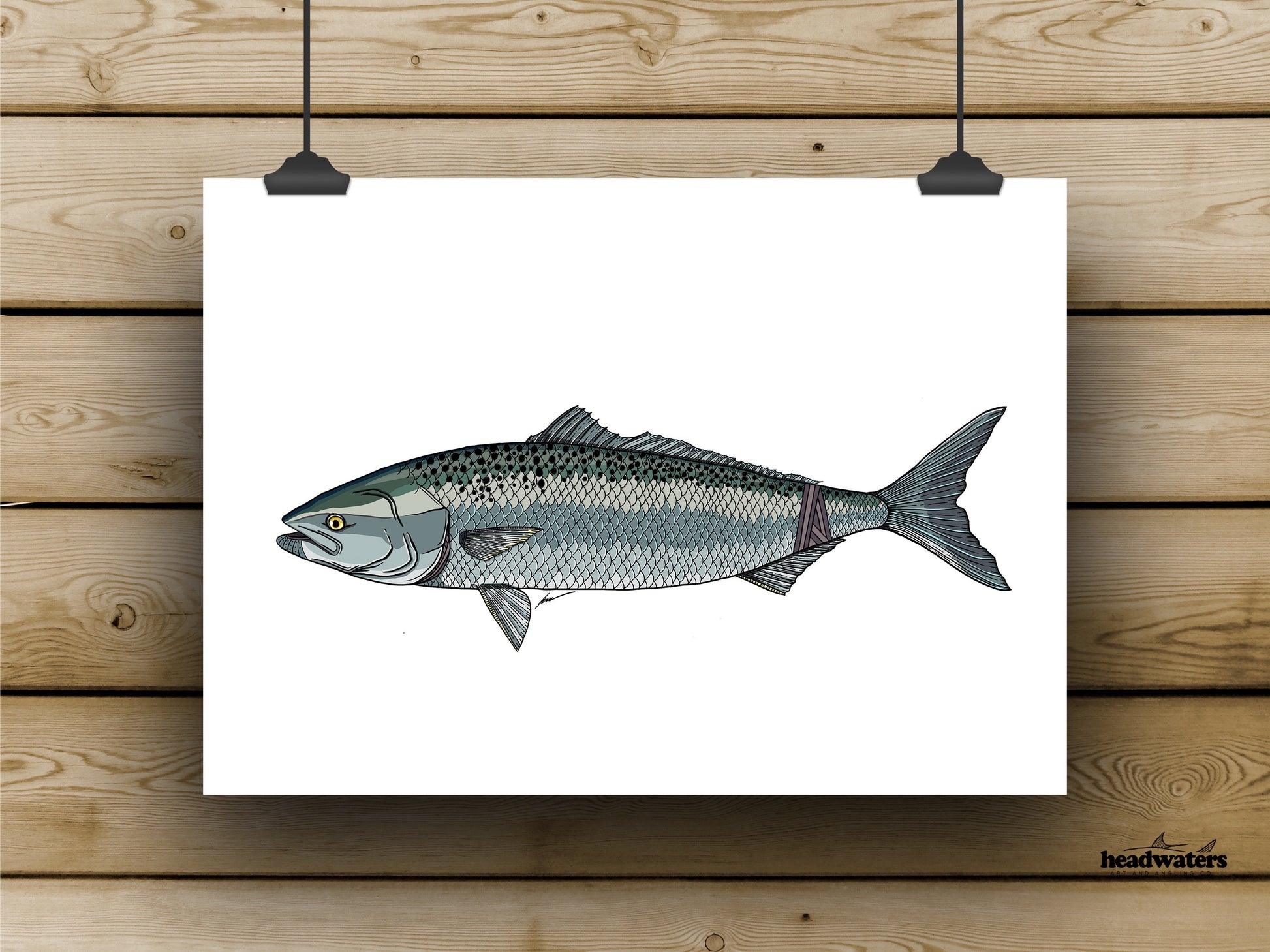 A vibrant digital Aussie Salmon (Kahawai) print on high-quality lightly textured watercolour paper.