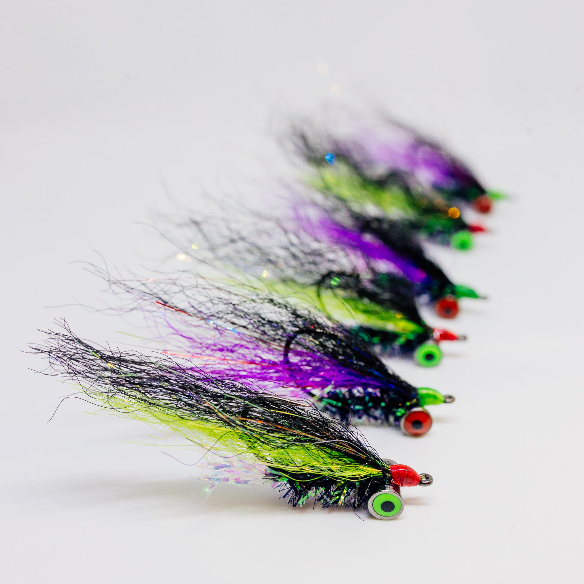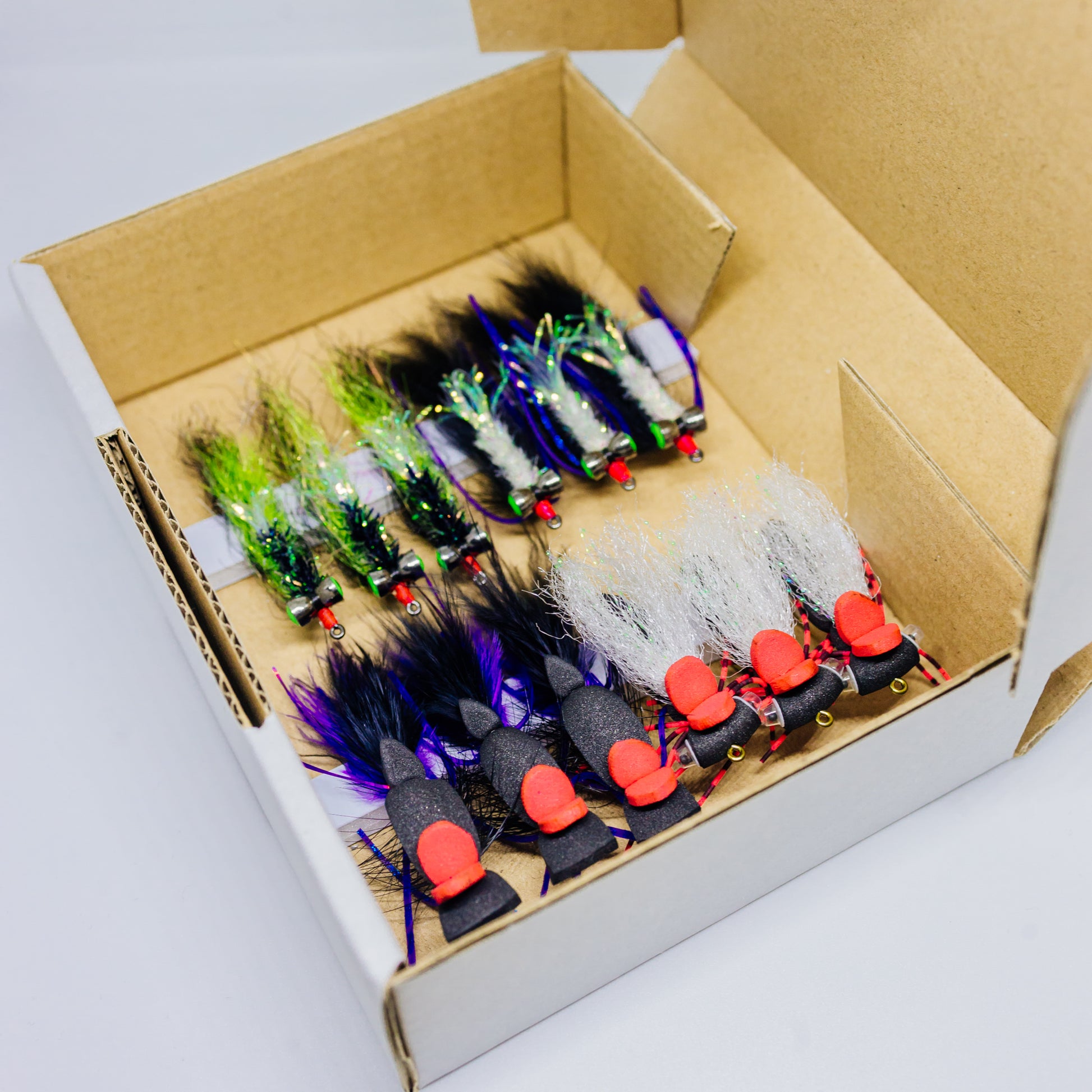 Collection of bass flies in one pack. 6 of surface flies and 6 of sinking ones. Different colours to cover various of situations.