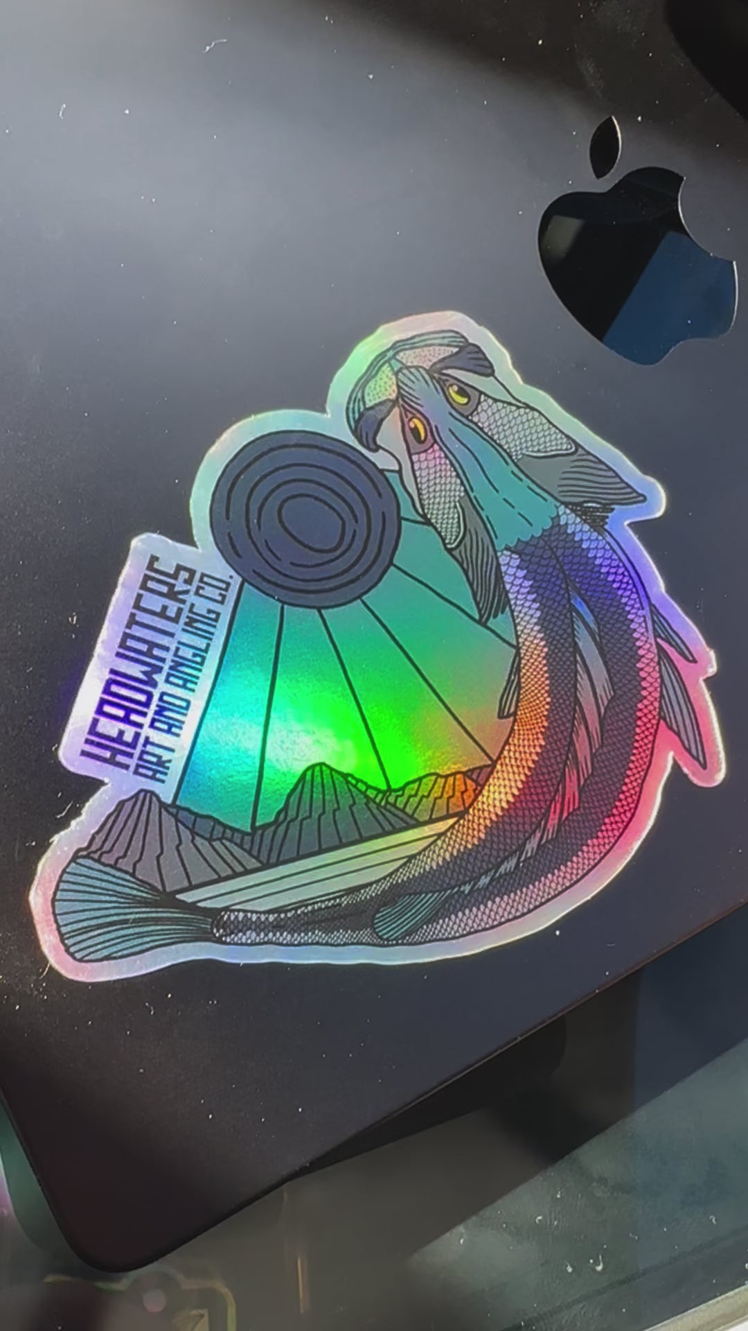 A new dark night design of a Barramundi jumping clean out the water under the light of the moon. This sticker measure 120x100 approximately . Premium holographic vinyl stickers, specially laminated to resist the elements.