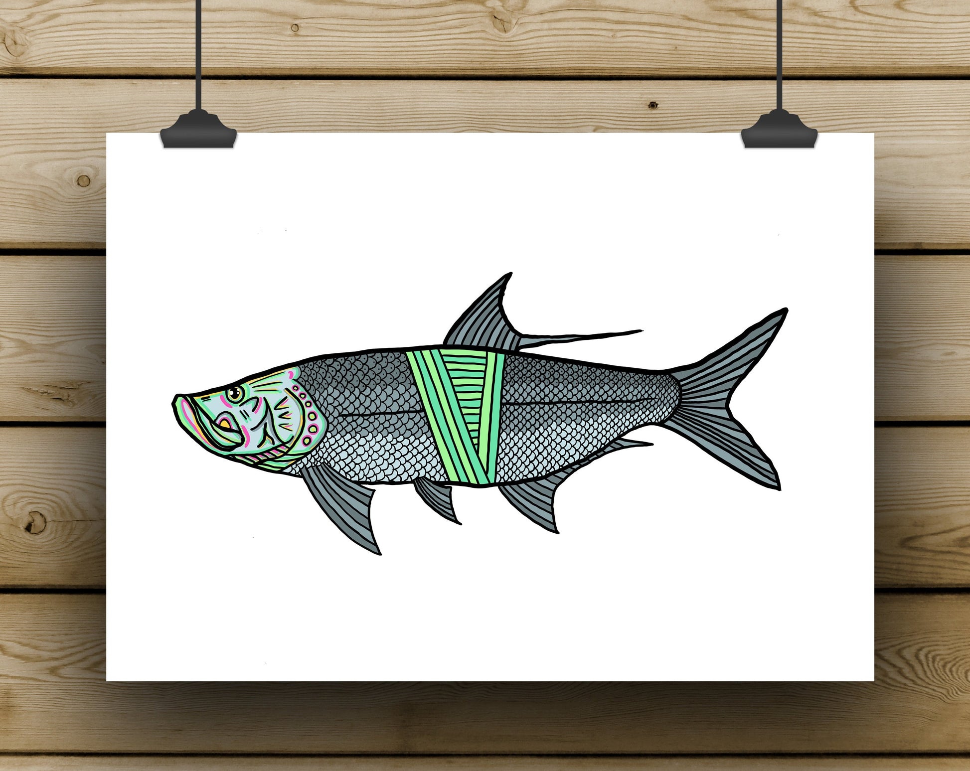 A vibrant digital Tarpon print on high-quality lightly textured watercolour paper.