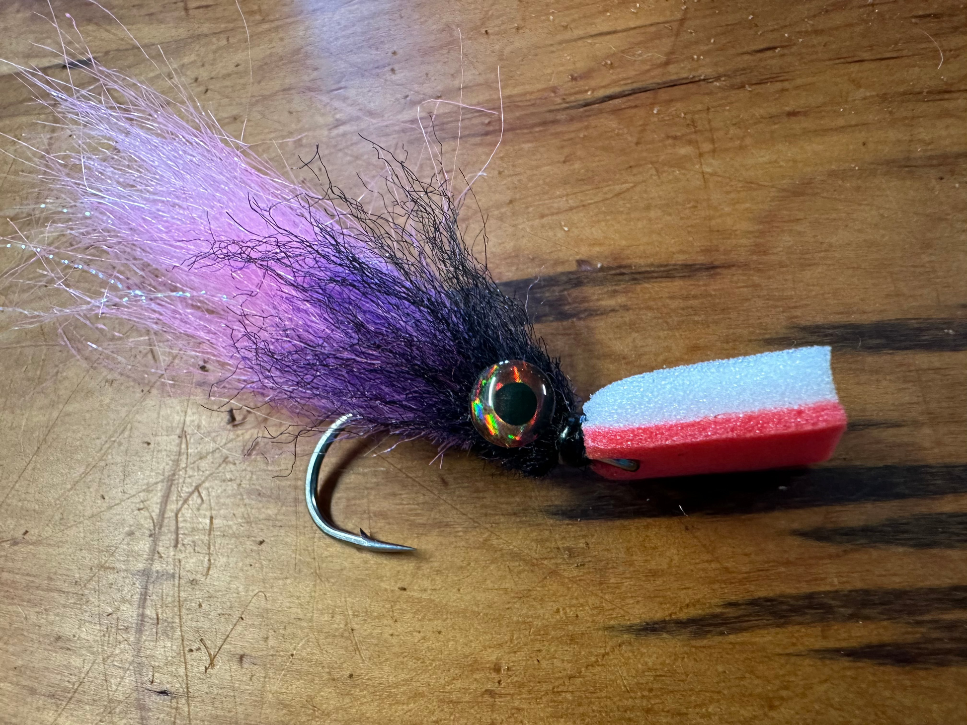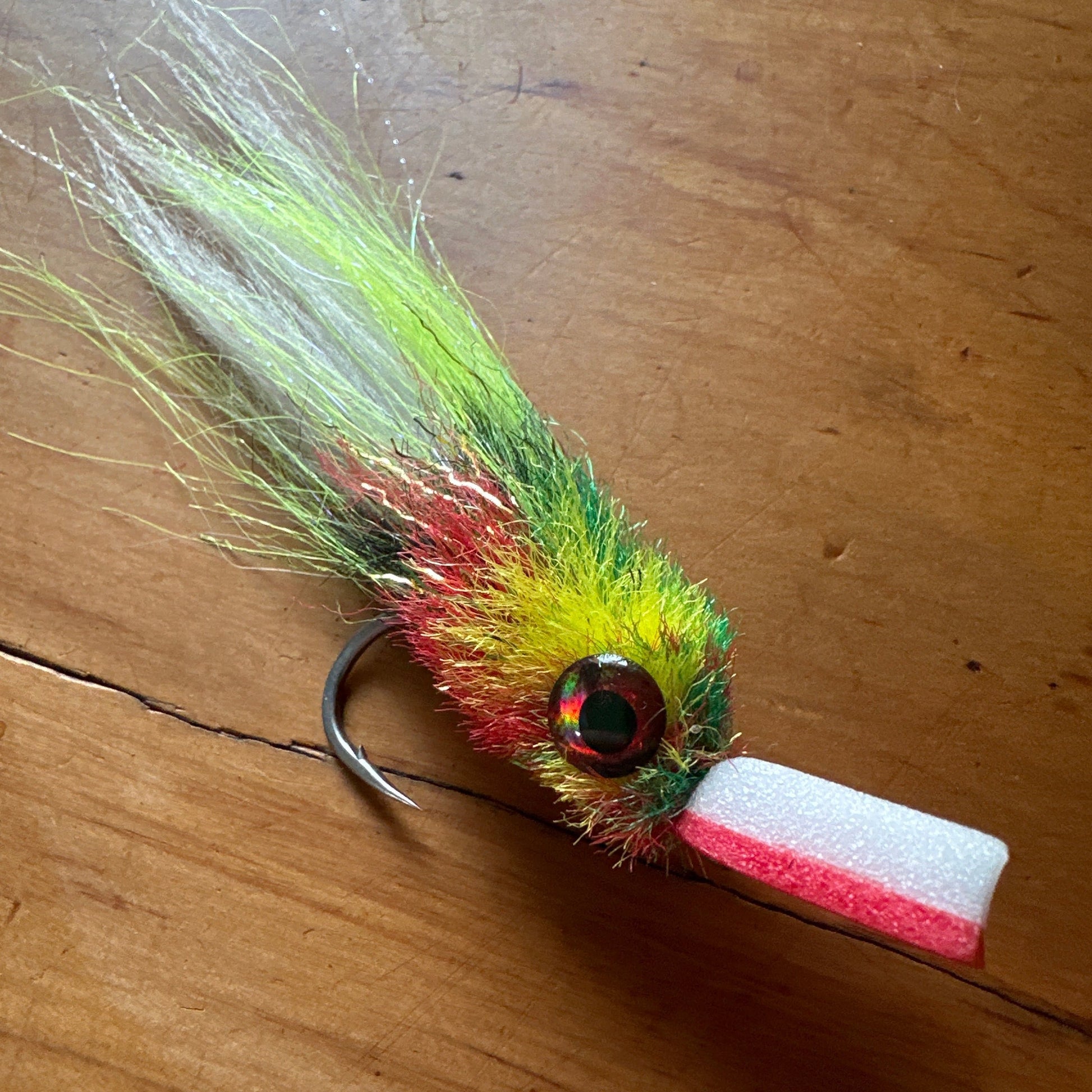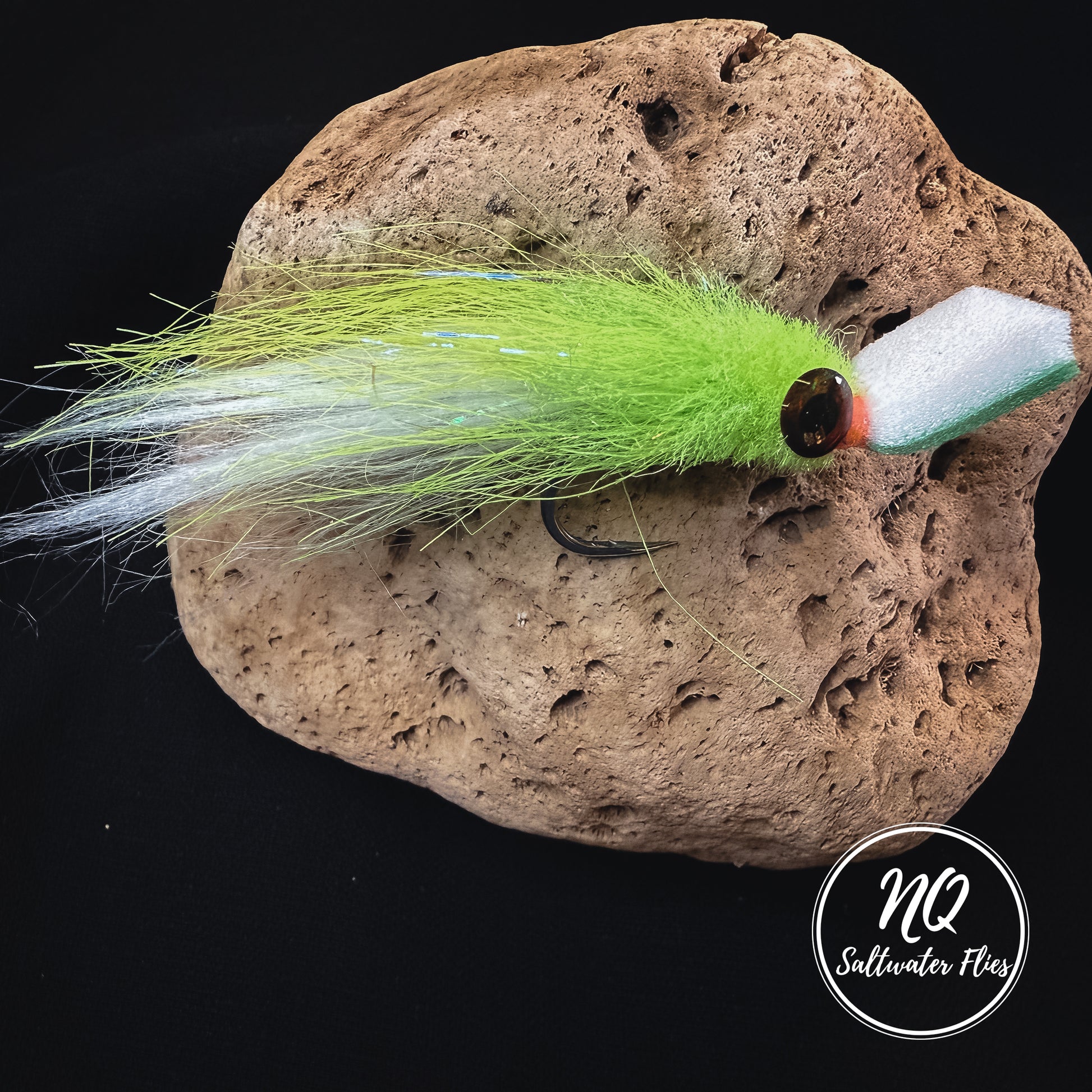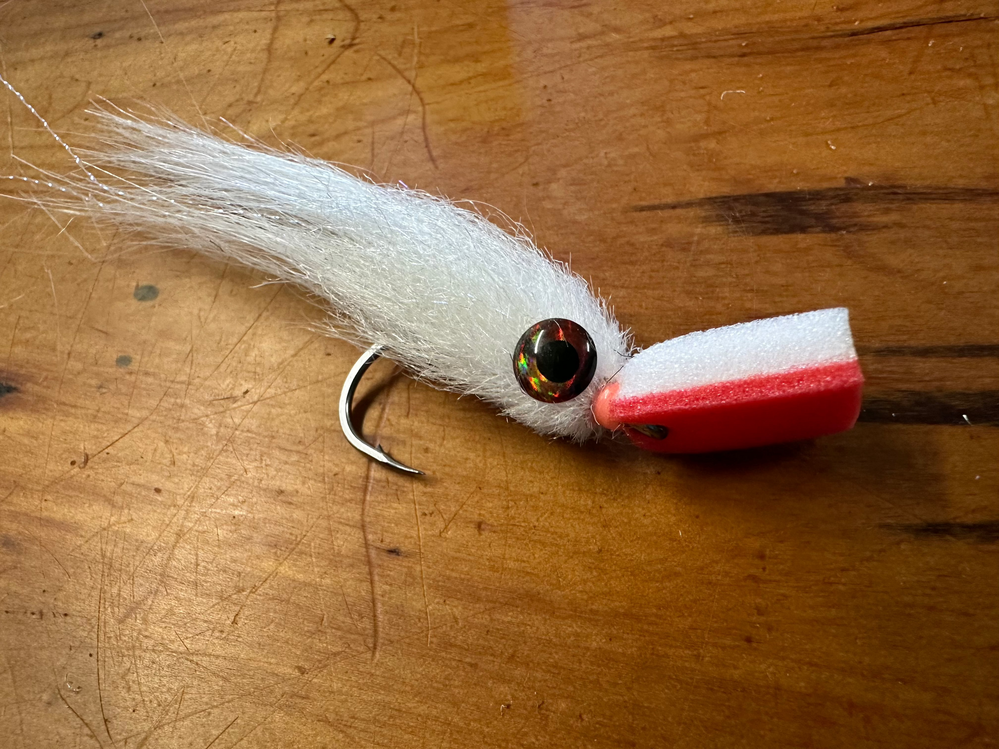 Designed by Space Coast Flies over in the US for (I believe) surface feeding snook, redfish and bass, the Sipper is a great topwater fly that can be fished either walk-the-dog style, or as a popper, depending on your needs. With the foam situated essentially forward of the hook eye, the at pause posture of the fly is tail down, just like a baitfish sipping at the water’s surface.