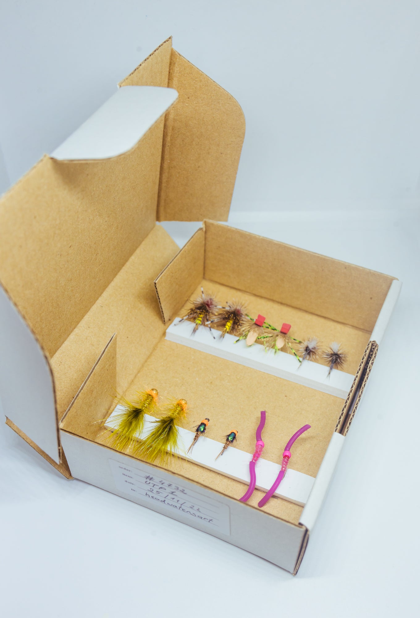 A collection of stimulators, dry's, nymphs, buggers and squirmy worms. A perfect all round pack for most situations you'll find Trout.