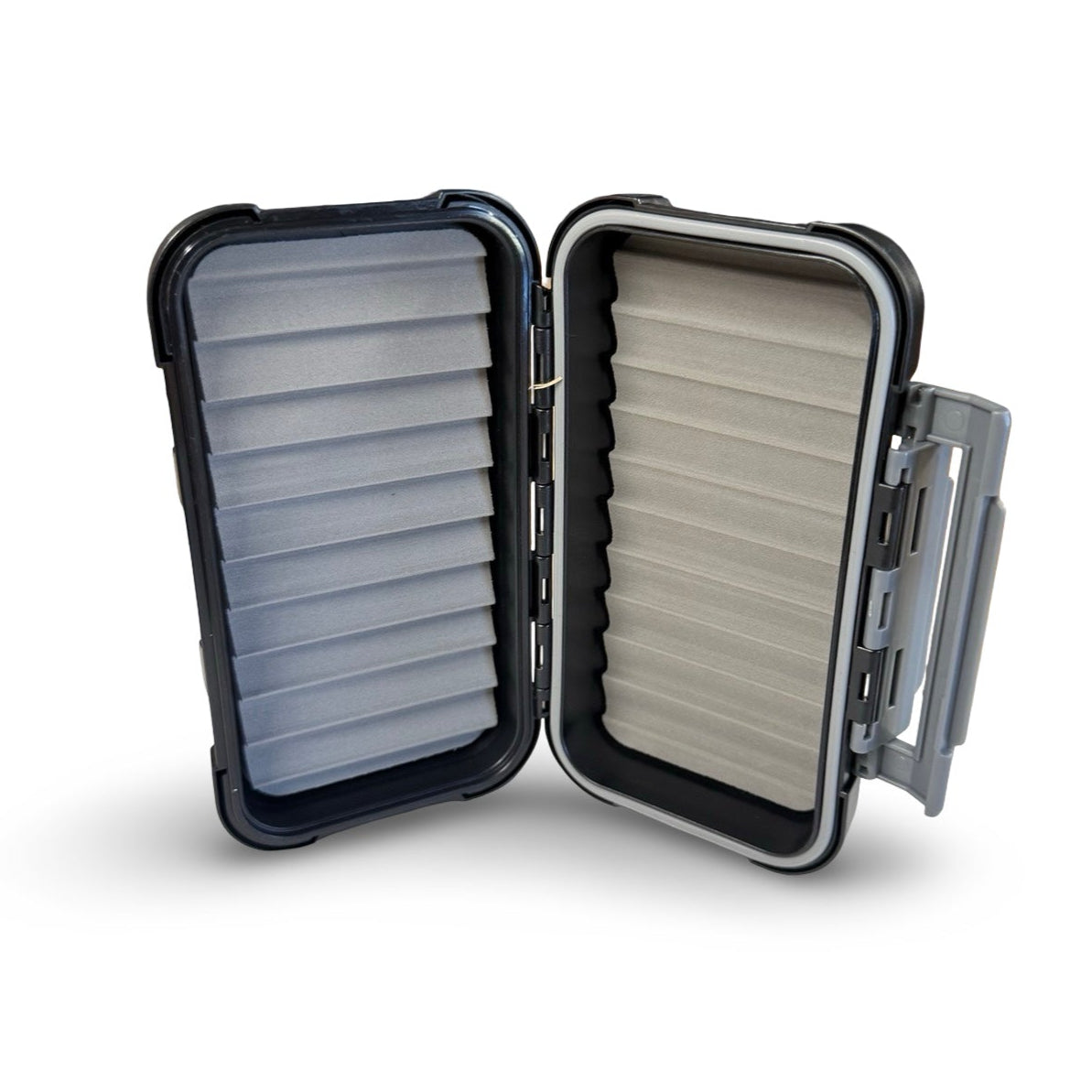 Built tough for the adventurous angler, this waterproof fly box features secure, individual compartments to keep your flies dry, organised, and easy to access. A high-density slotted foam lid offers additional storage for larger patterns, while the durable outer shell and reliable latch system make it ideal for salt or freshwater missions. Compact, rugged, and ready for the elements.
